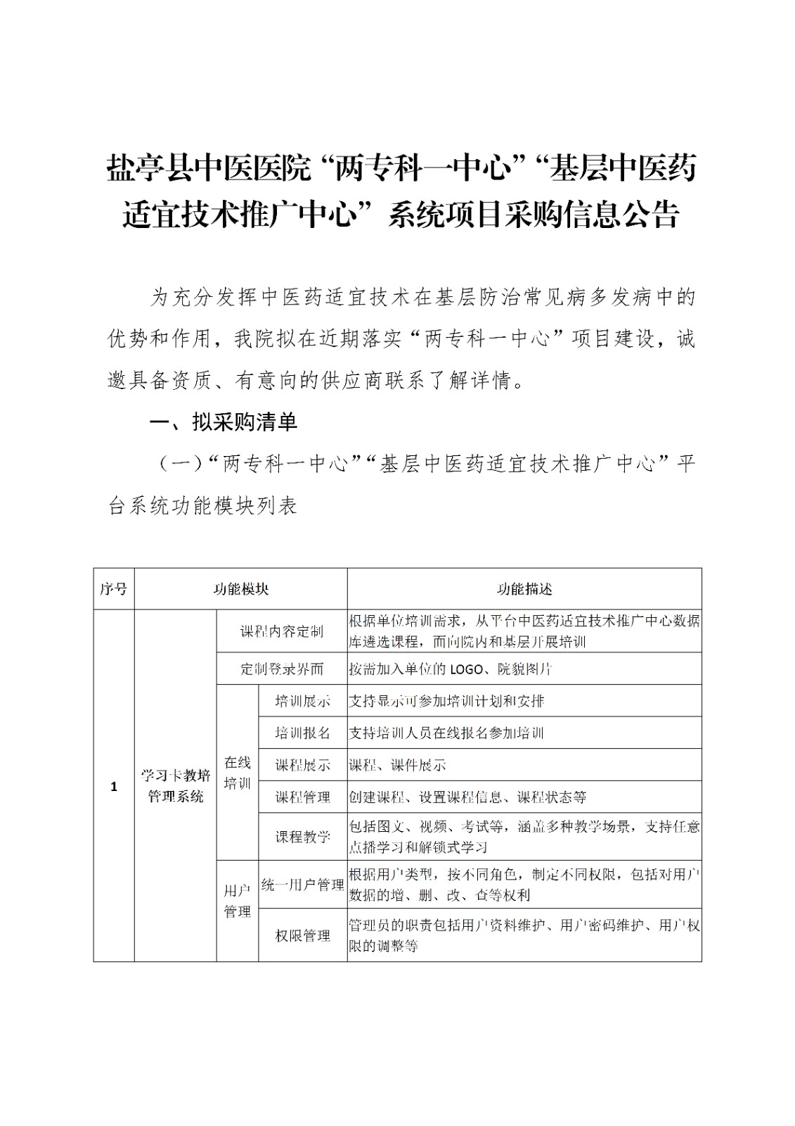 盐亭县中医医院“两专科一中心”“基层中医药适宜技术推广中心”系统项目采购信息公告